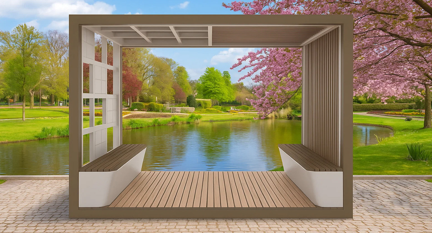 레이크프레임 파빌리온 (Lake Frame Pavilion)|PNDP-522 제품목록으로 바로가기 자료 및 바로가기 나라장터 바로연결 도면 다운로드 시공사진 보러가기 기타 호수 풍경을 한눈에 담는 프레임 구조로 설계된 파빌리온입니다. 따뜻한 우드 데크와 양측 벤치가 어우러져 자연 속에서 편안한 휴식을 제공합니다. 제품명 레이크프레임 파빌리온 (Lake Frame Pavilion)|PNDP-522 물품식별번호 25953087 규격 3,000 x 2,000 x 2,200(H) 재질 stl, hard wood, galvanized, polycarbonate, hpl 레이크프레임 파빌리온 (Lake Frame Pavilion)|PNDP-522 물품식별번호 25953087 규격 3,000 x 2,000 x 2,200(H) 재질 stl, hard wood, galvanized, polycarbonate, hpl 기타 호수 풍경을 한눈에 담는 프레임 구조로 설계된 파빌리온입니다. 따뜻한 우드 데크와 양측 벤치가 어우러져 자연 속에서 편안한 휴식을 제공합니다. 자료 및 바로가기 나라장터 바로연결 도면 다운로드 시공사진 보러가기